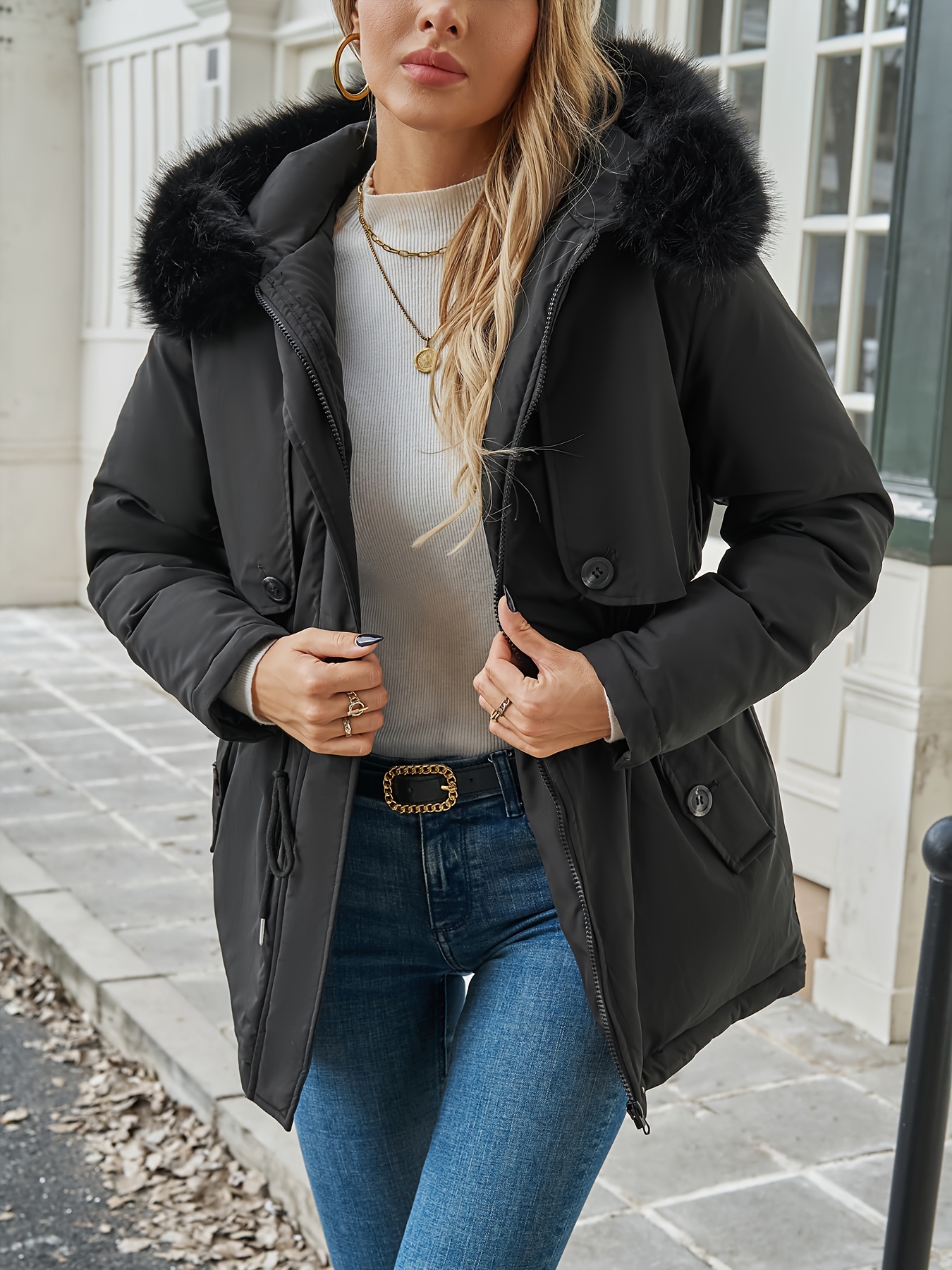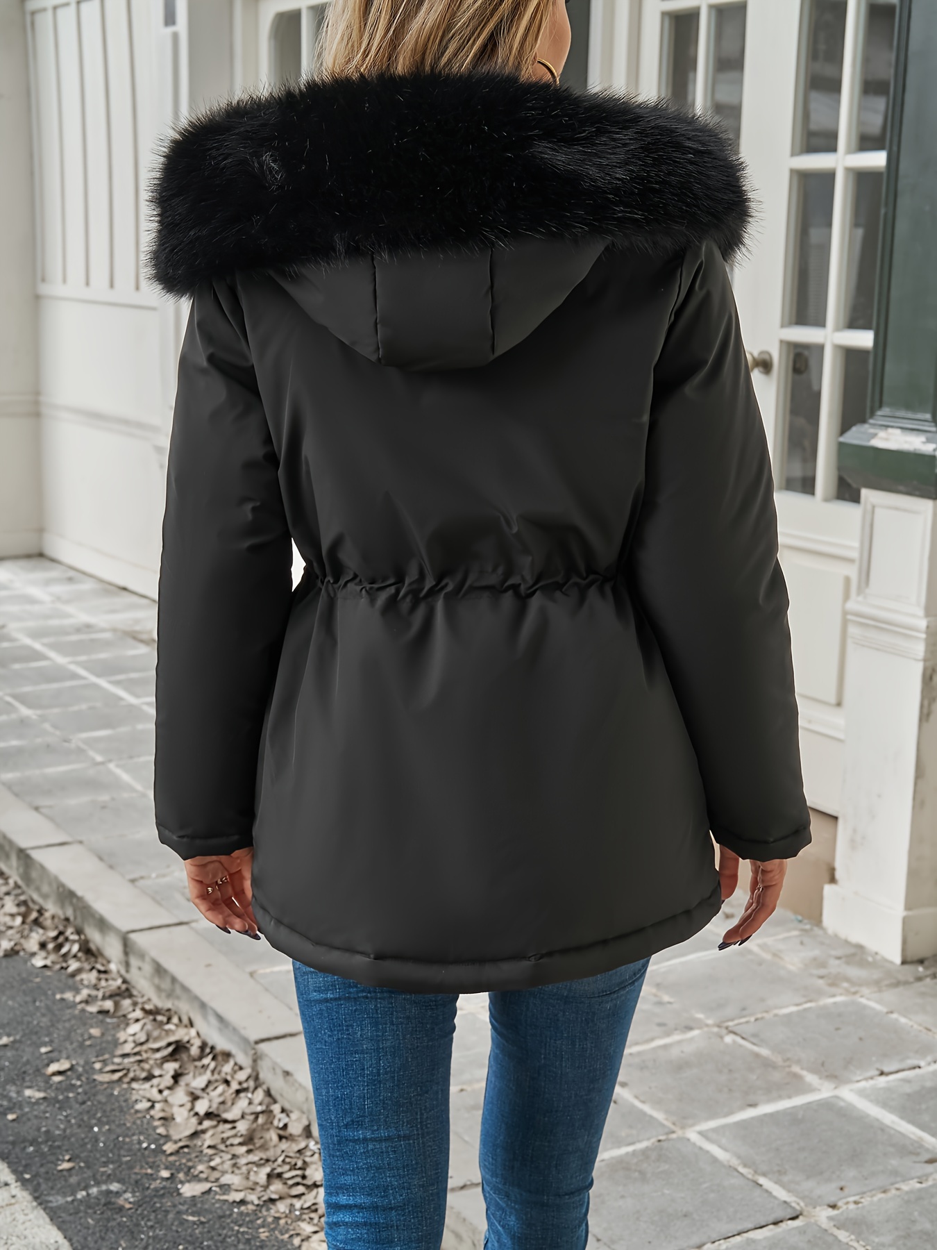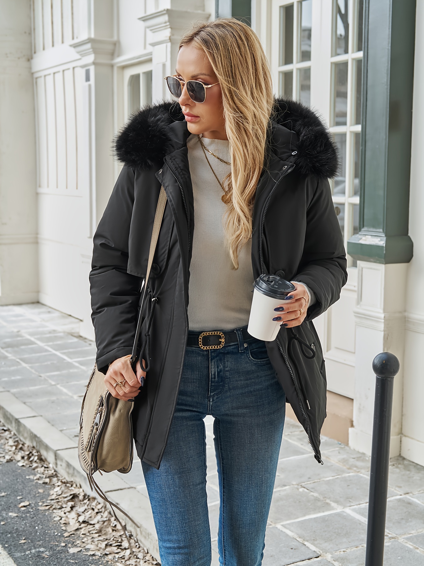 1pc Women'S Plus Size Casual Style Hooded Softshell Jacket, Polyester Fabric, Solid Color, Drawstring Detail, Regular Length, Long Sleeves for Autumn/Winter