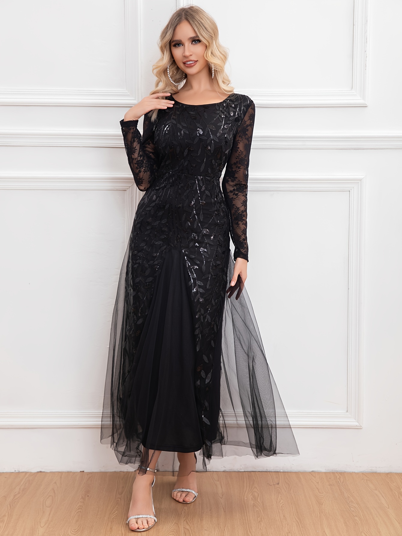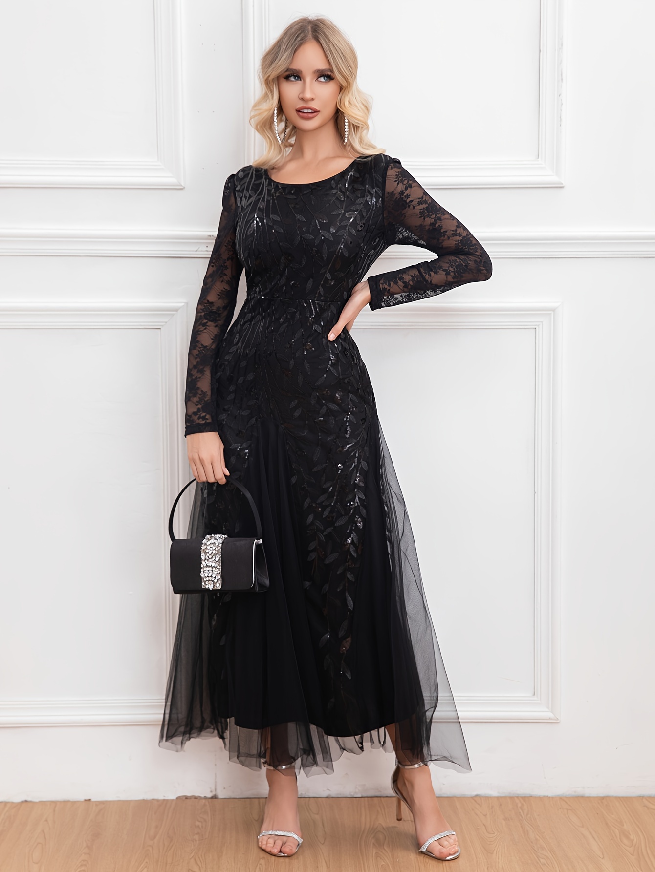 Elegant Directional Light Luxury Sequined Heavy Work Women'S Banquet Evening Dress