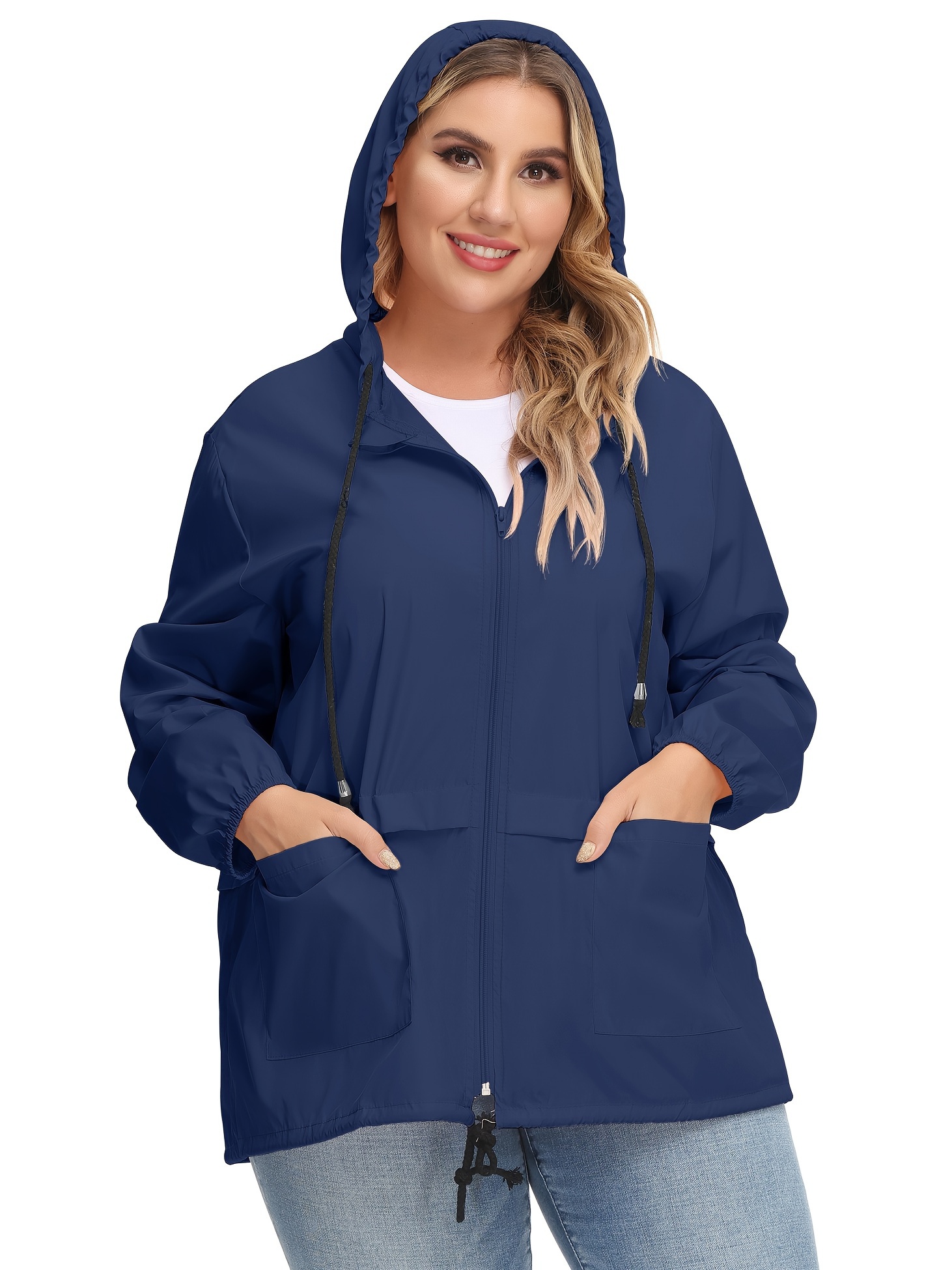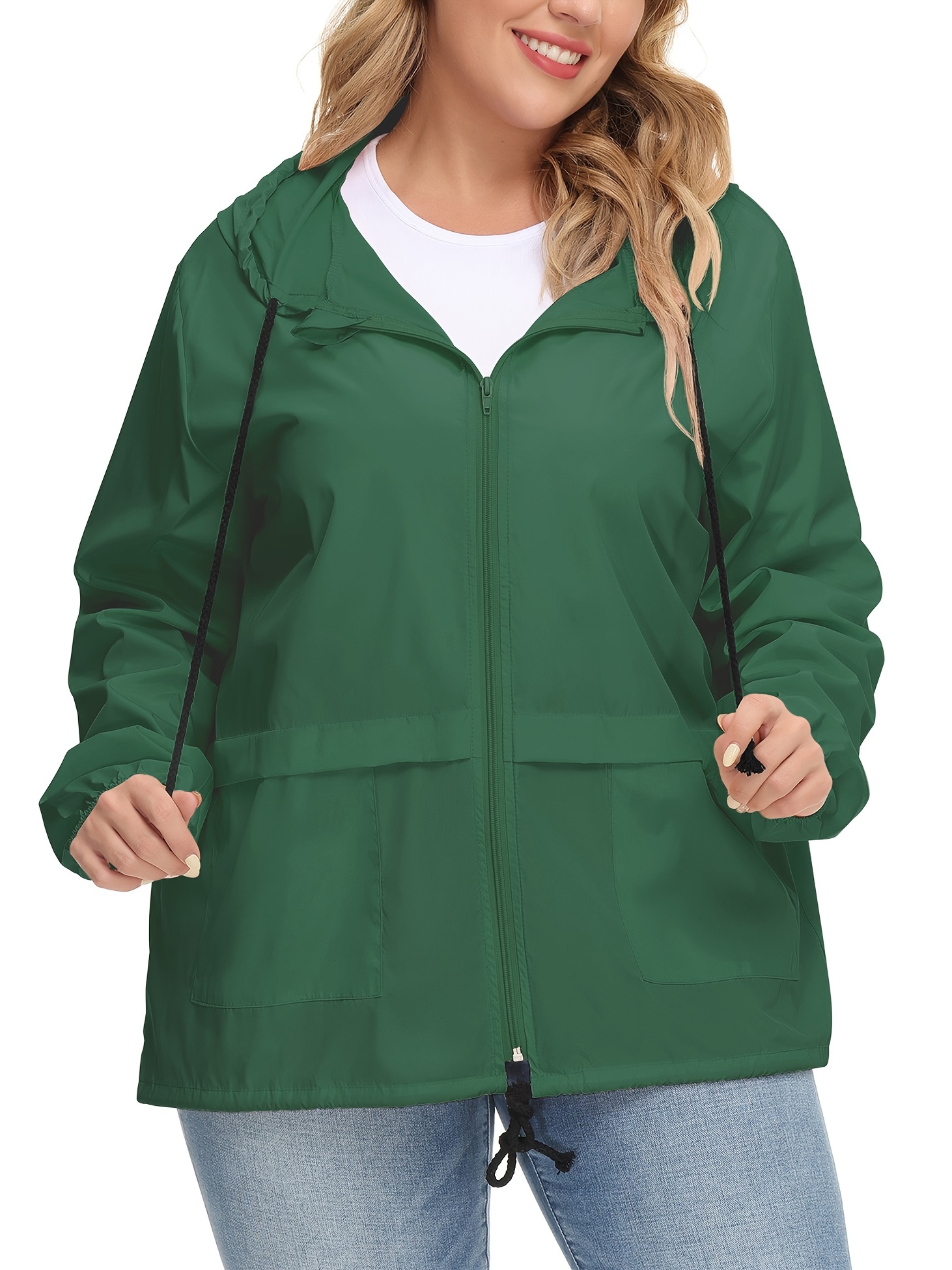 Plus Size Raincoat Women Water Resistant Rain Jacket Packable Outdoor Hooded Windbreaker