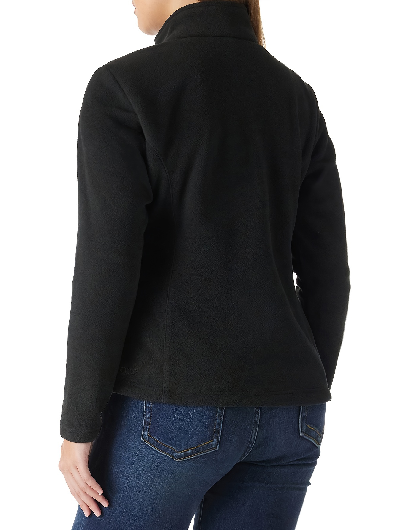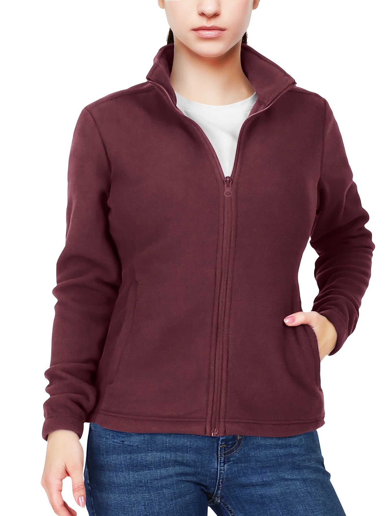 Women's Outdoor Sports Plush Jacket, Plus Size Solid Color Zipper Warm Soft Long Sleeve Lightweight Fleece Jacket
