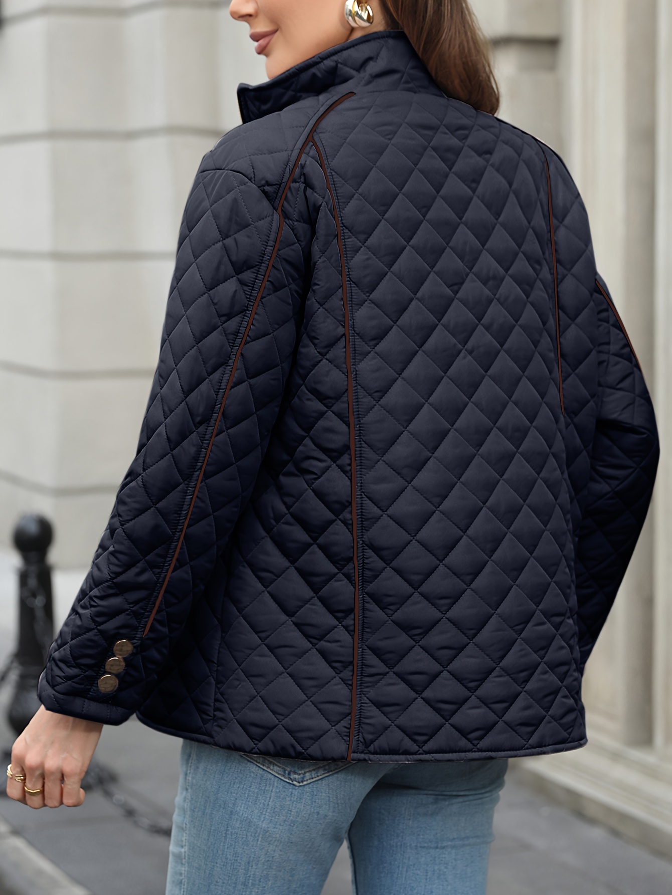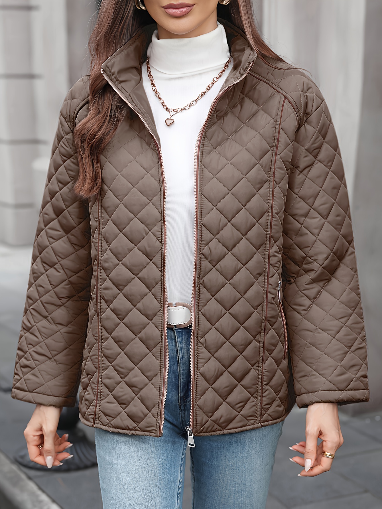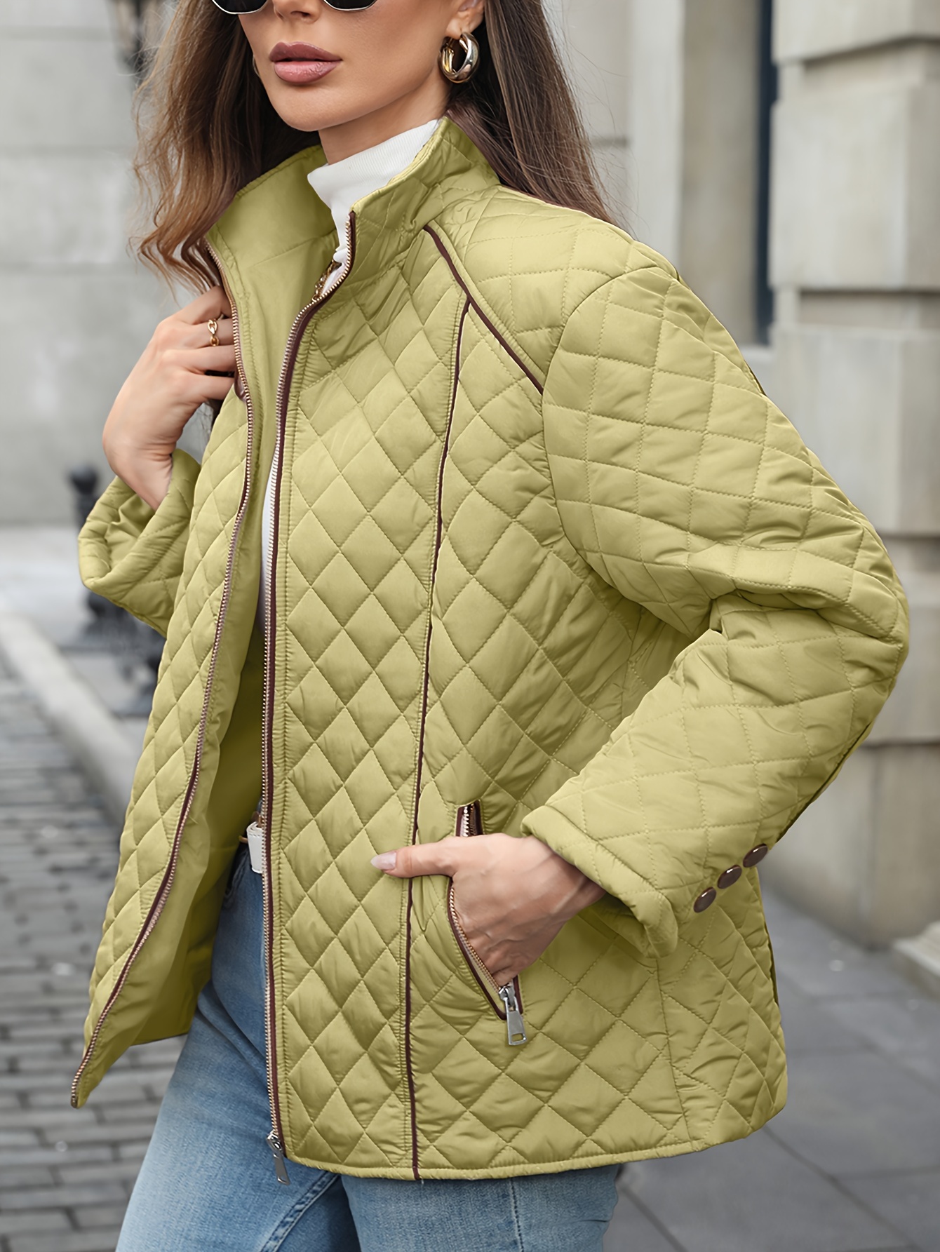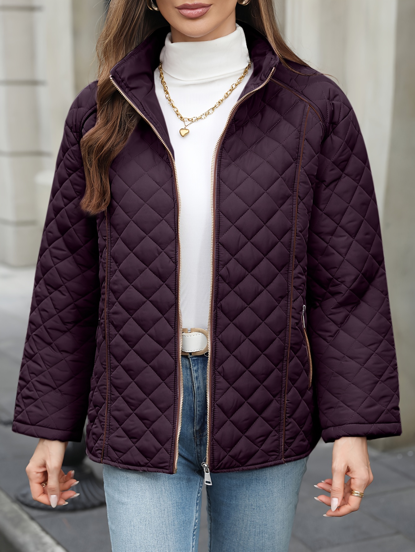 Women's Oversized Polyester Coat, Casual Hug Fit, Small Stand Collar, Long Sleeve, Zipper Closure, Autumn And Winter Warm Coat
