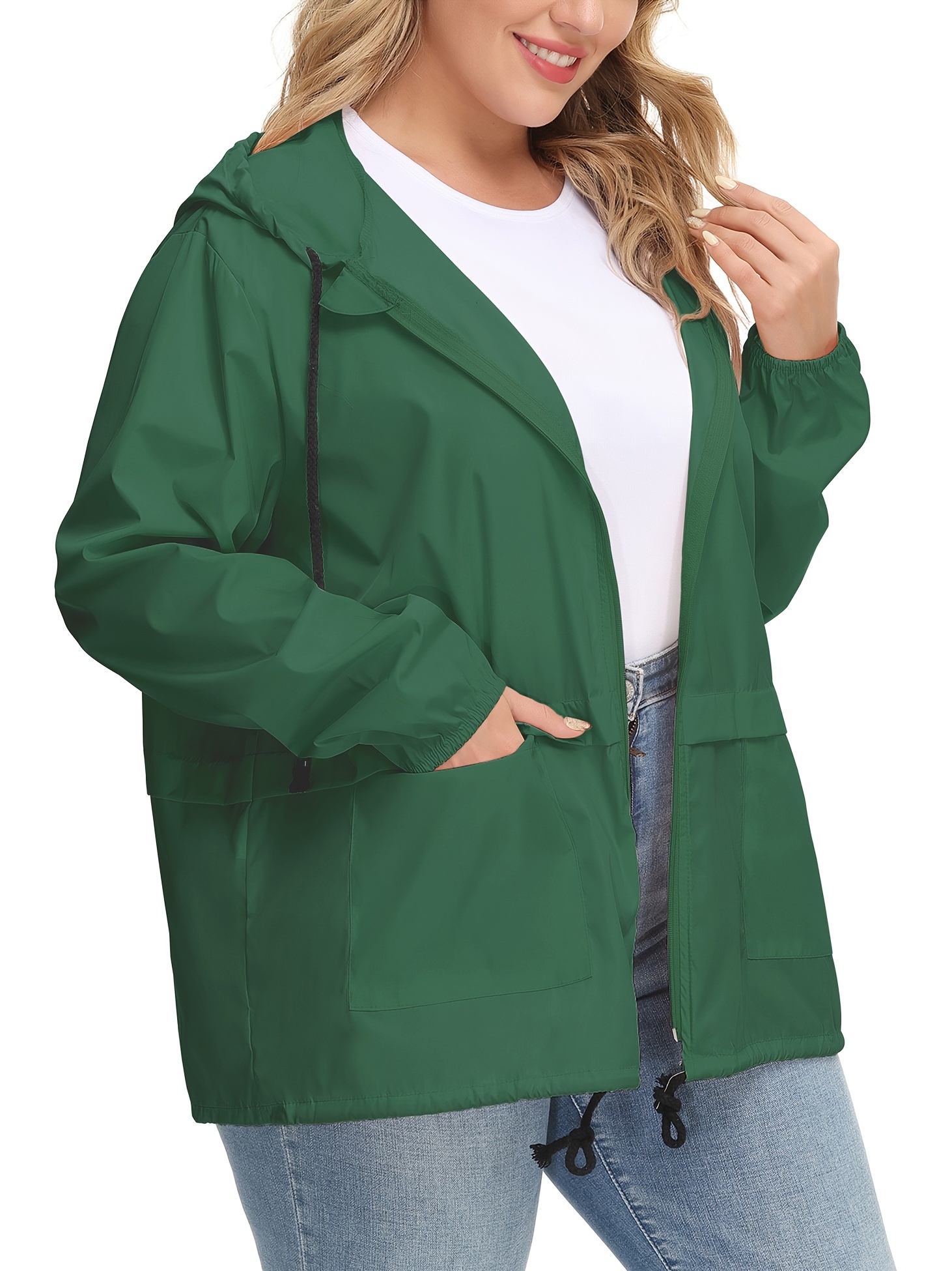 Plus Size Raincoat Women Water Resistant Rain Jacket Packable Outdoor Hooded Windbreaker